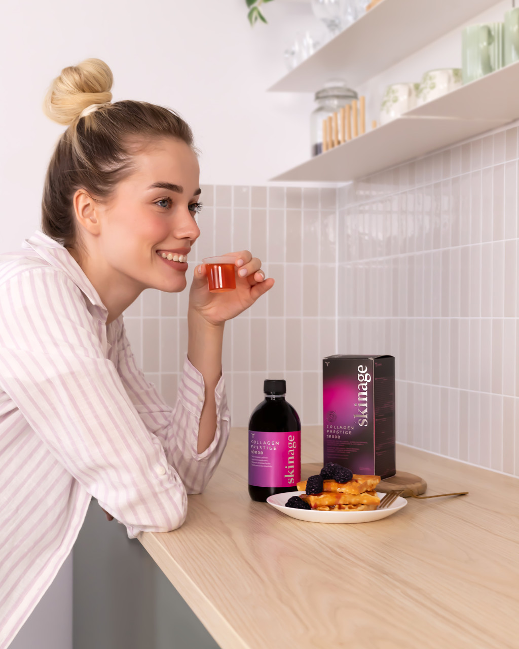 A Skinage COLLAGEN PRESTIGE 10000  új megközelítést kínál a bőrápolásban: hatékony hatóanyagok egyedülálló kombinációja révén közvetlenül a bőrsejtek szintjén fejti ki hatását, elősegítve a bőr egészséges működését.